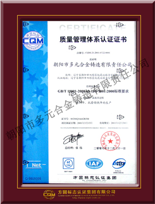 公司嚴(yán)格貫徹執(zhí)行ISO9001-2000質(zhì)量管理體系,加強(qiáng)質(zhì)量控制,通過設(shè)立質(zhì)量控制點(diǎn),全員參與,對(duì)關(guān)鍵工序進(jìn)行重點(diǎn)管理控制。技術(shù)質(zhì)檢部門嚴(yán)格執(zhí)行工序的首檢,巡檢,和完工檢驗(yàn),堅(jiān)決杜絕不合格產(chǎn)品出廠。累累碩果寫下了多元人的成功和自豪,公司產(chǎn)品所獲得的殊榮不勝枚舉, 連續(xù)三年獲得省市誠信單位,遼寧省騰龍企業(yè),高鉻鑄件產(chǎn)品被 評(píng)為朝陽市名牌產(chǎn)品,高錳鋼產(chǎn)品榮獲遼寧省名牌產(chǎn)品等殊榮。